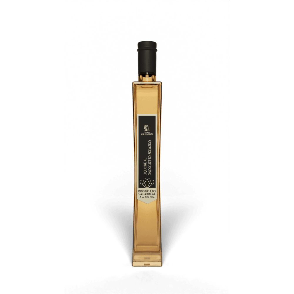 Il Mignon da 4 cl contenente il Liquore al Finocchietto di Donna Annunziata cattura l’essenza della macchia mediterranea. Preparato con il finocchietto selvatico calabrese, questo liquore è noto per le sue proprietà digestive e per il suo sapore fresco, pulito e piacevolmente balsamico.