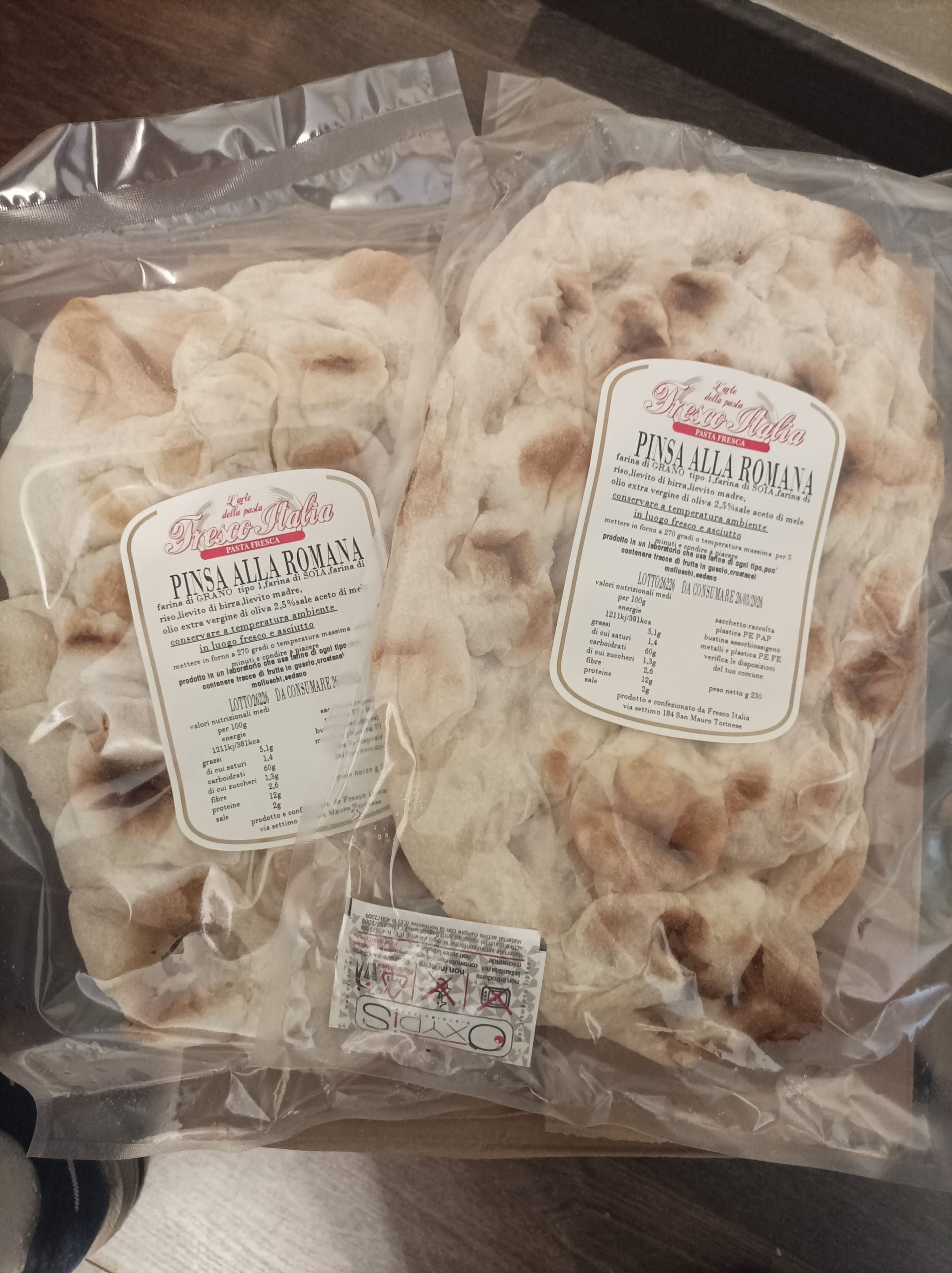 Pinsa Romana Artigianale . Temperatura Ambiente . Shelf Life 30 Giorni